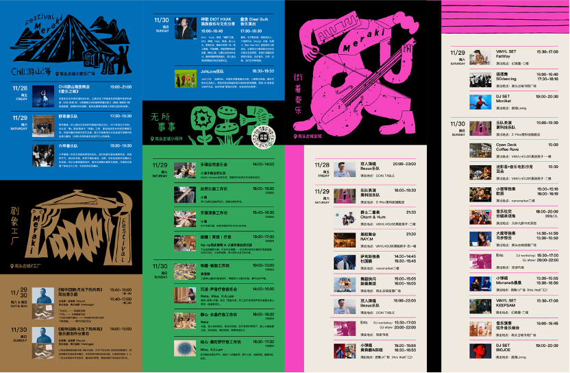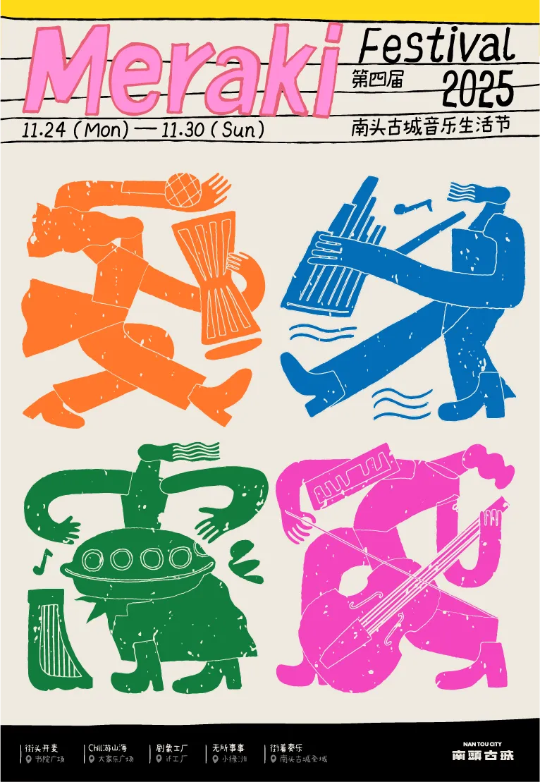 第四届南头古城音乐生活节今年定档11月24-30日,延续自由、鲜活的活动特色,活动期间整个南头古城将化身音乐嘉年华,以“Meraki Festival”为主题,数十组音乐人松弛歌唱,全城开麦。