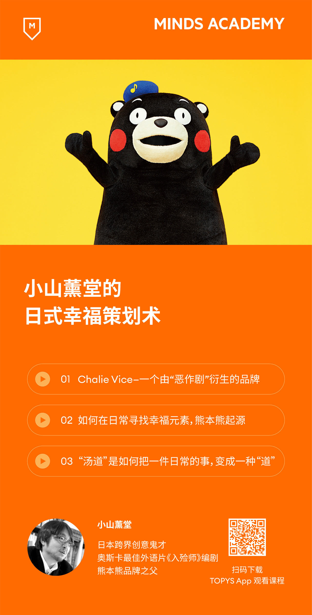从一个由“恶作剧”衍生的品牌,到在日常生活中寻找幸福元素,策划出熊本熊品牌,再到把“泡汤”变成一种“道”… 看小山薰堂施展创意魔法。