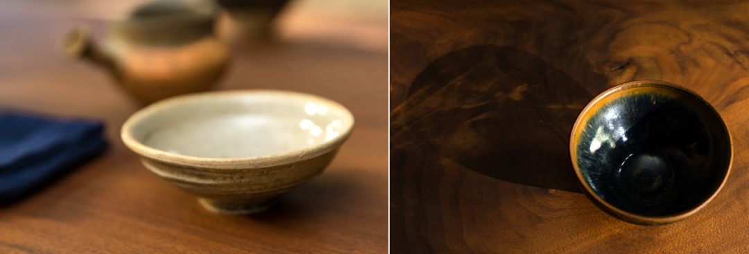除各色珍贵、古朴的古董器具外,还有一枝路边随缘得来的茶花。这不是一套常规的组合,而是一次融汇古今的创作——除了考虑整体的和谐、平衡与和衬,与雷克萨斯品牌和全新LM车型的气质相合,与主角两位男士的身份相合,用郭杨杨的话说,还要真的好用、用着舒服。她专为片中男主角选择了这只带有兔毫窑变的宋盏——“气场强大”、“可爱”、“平时舍不得用的好盏”——她话里话外透露出对它的喜爱。她形容用宋盏喝茶是开怀的,它对茶汤的表现,形制的美感,它让从手到嘴唇到心神的触感妙不可言。两位男士是不是喝乌龙茶比较合适?宋盏加乌龙这种流行的方式,似乎是个安全的答案。但回归到更深一点的思考之后,这个方案很快被推翻。郭杨杨说,茶在宋代进入了一个非常好的美学体系和领域,宋徽宗最爱的是白茶,白茶在宋代就进入了一个非常神奇的境界,所以决定了就用白茶。白茶中又选择了银针,茶汤颜色的清淡清澈、就像水一样,是她认为滋味最有趣、最值得品味的一种白茶。还有那枝“争气”的茶花,长在上海的街头,当它还是花苞的时候经郭杨杨之手与宋代的茶叶沫釉花瓶结缘,经历了一整天棚内的拍摄,然后坐着飞机一路被带回北京,最后,它盛放在观复的冬至海报里。一期一会,它本真自然的姿态,藏在片中最不易察觉的角落。“花是很神奇的,它特别知道自己参与了这样一件事情,它给了我们很大的惊喜。”