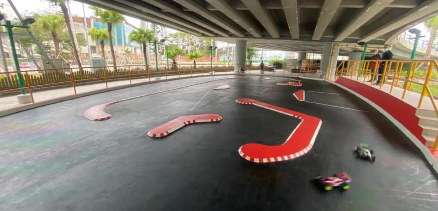 同样受欢迎的,还有湾仔坚拿道天桥下的模型车场。与维多利亚的池塘不同,这算是市民自发利用桥洞闲置空间开荒出的“宝地”。起初人们只是用白色油漆在地上划制赛道,久而久之,口耳相传,这里成了新手练习的首选,也逐渐受到官方的认可和支持,发展成今天的模样。