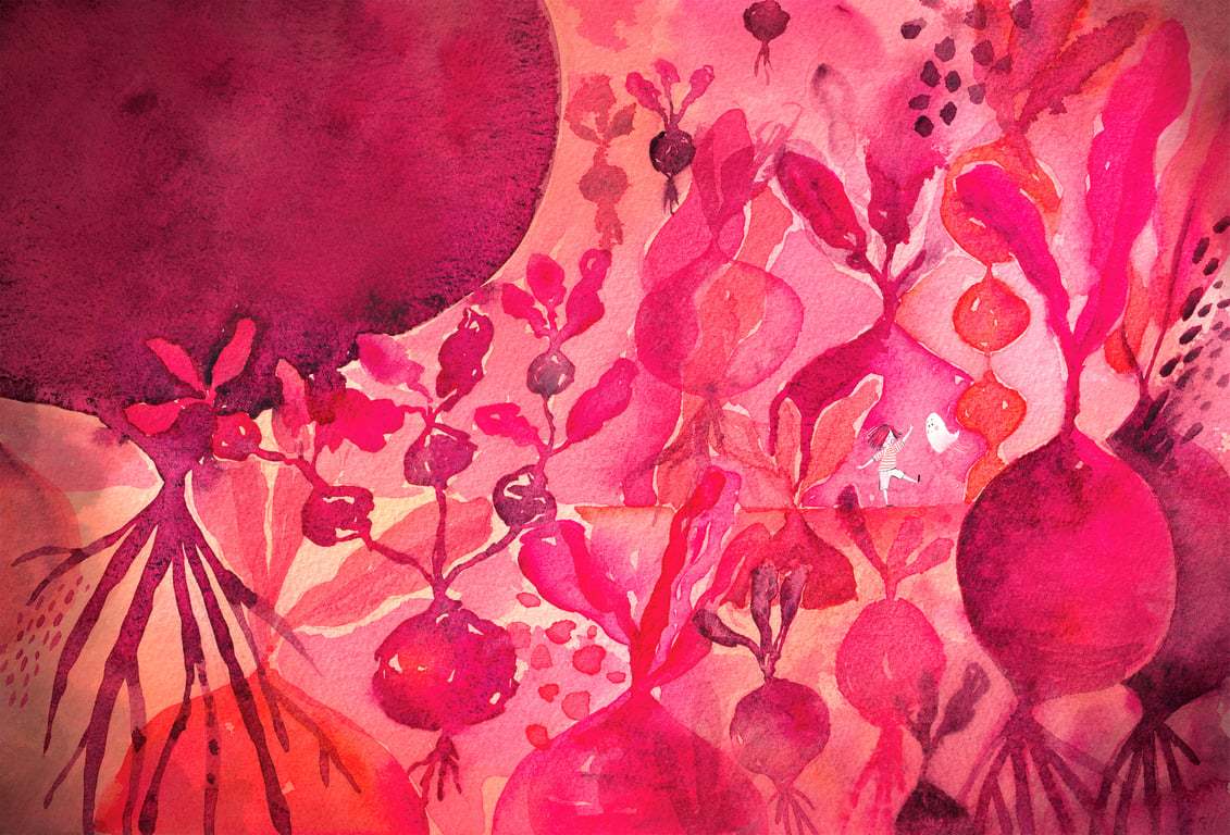 这是一本非常私人的书。作者创作它是为了纾解失去母亲的悲伤与痛苦情绪。“甜菜根森林”以视觉形式展现了人们内心深处那个神秘的地方,那里承载着我们隐秘细腻的情感。