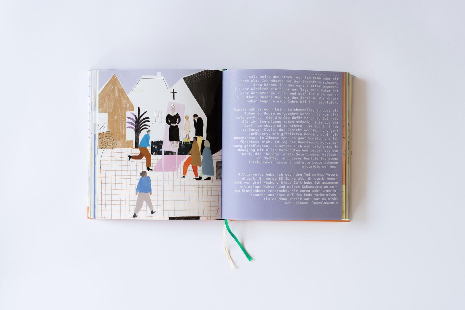 这本关于死亡的书,探讨了死亡,悲伤和所有与之相关的事情。两位插画师看来,如果没有人谈论死亡,那么每个人都是孤独的。理解死亡,以某种方式更好地将它与生者联系起来,意味着要去凝视它,而这本书便是那个“邀请”,鼓励人们正视这件常人难以正视的事。