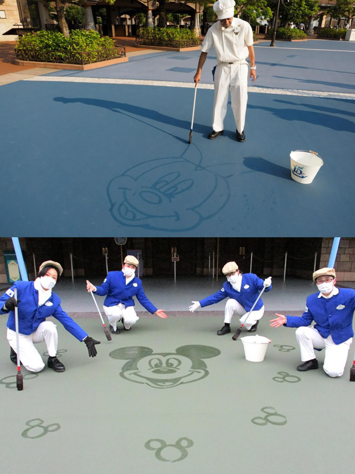 东迪的清洁工工作时自带音效,像是献上一场街头表演;上迪的保洁会拿着毛笔在地上画画,制造临时的“打卡点”;许多人还偶遇过环卫工把落叶扫成米奇头的形状。这些在其他景点默默无闻的服务者,在迪士尼却成为了最懂魔法的人之一。