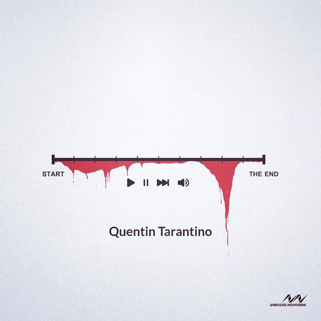 熟悉昆汀的人都知道,暴力美学、黑色幽默是昆汀电影绕不开的话题。因此,Behzad用极为凝炼的方式表现这位导演的作品风格:只需要一根渗血的进度条。无须多言,看过的人一下子就能懂得他想要表达什么。