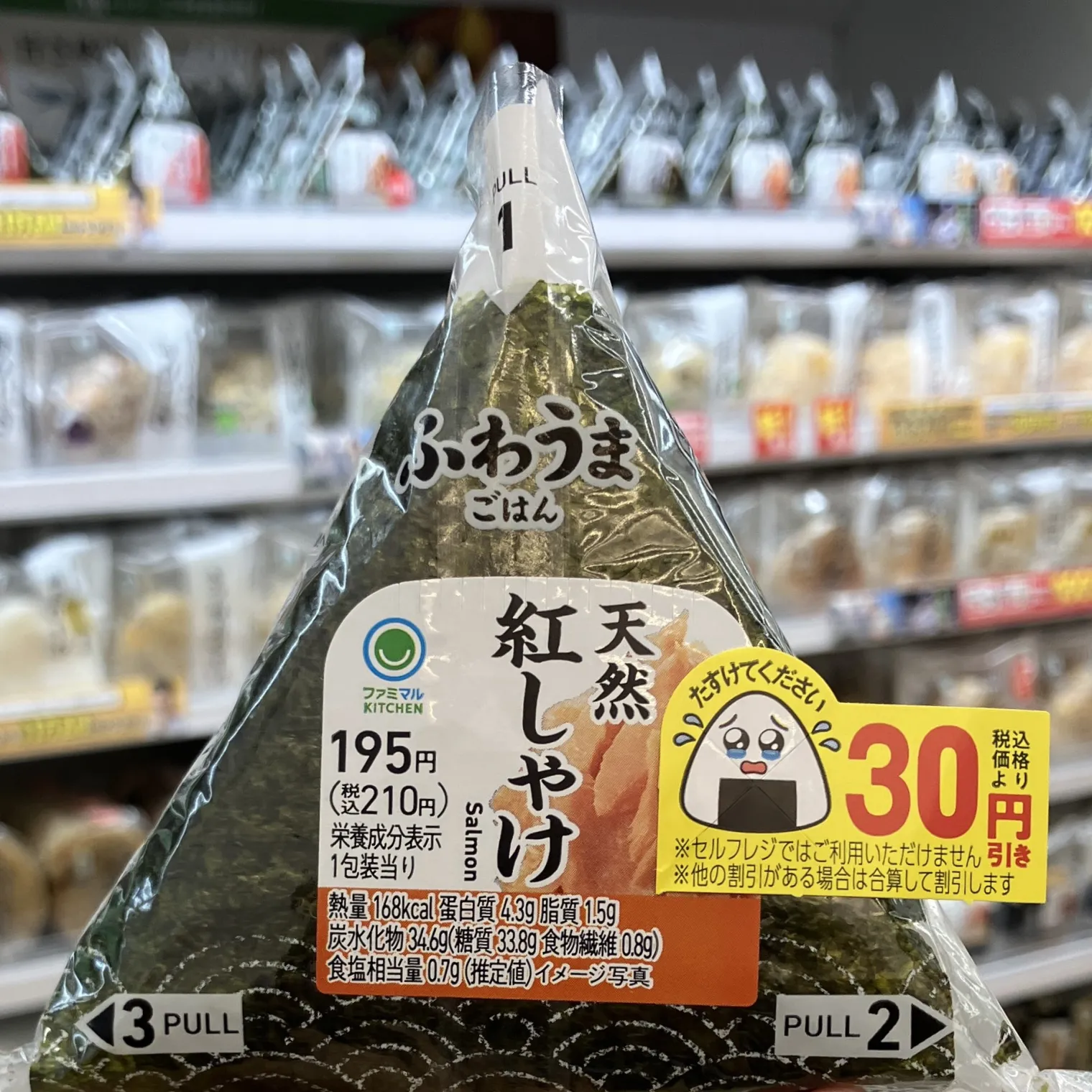 这张贴纸被贴在临期商品上,一个眼泛泪水的饭团正在发出“请帮帮我”的呼救,它的一旁标注了折扣金额。相比以往冷冰冰的“50元OFF”,这次的贴纸多了些表情也多了些情绪。