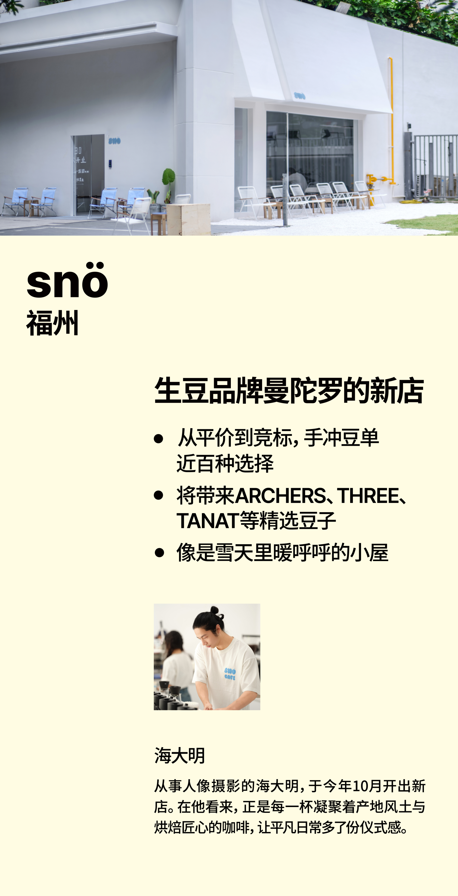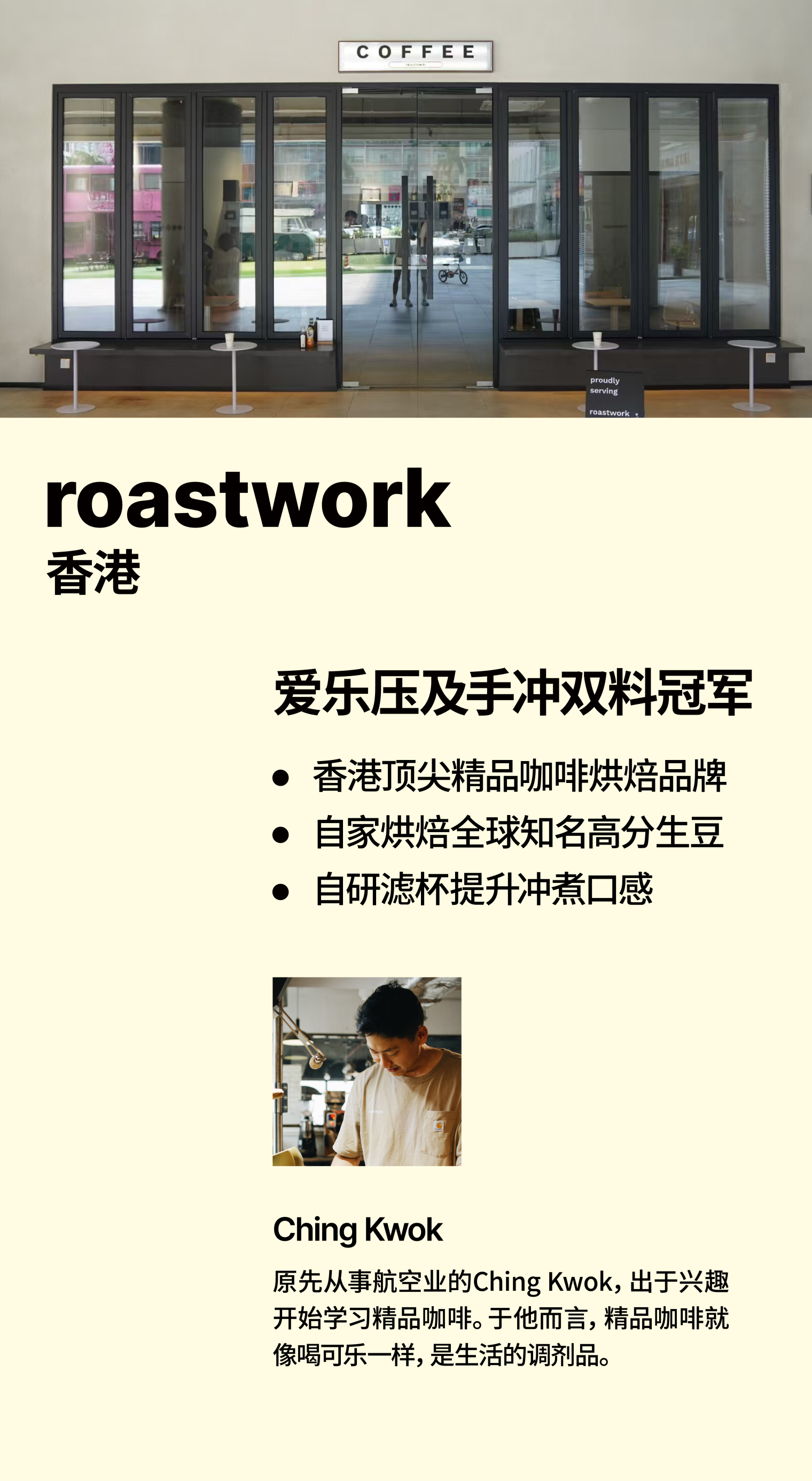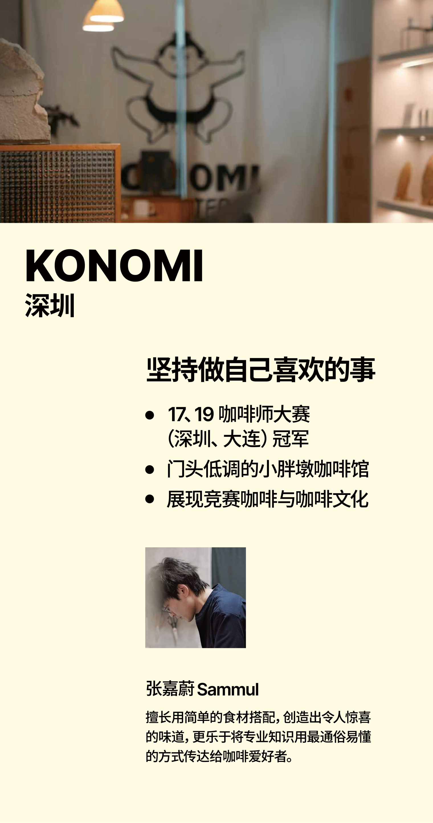 从开一家店的缘由、到旅途中偶遇的小馆,再到与同好交换豆子的欣喜,关于咖啡,总有说不完的话题。为此,我们打造了一个空间,邀请你随意走动或是坐下,用一杯咖啡的时间,与这些故事碰面。