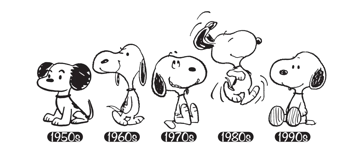 起初读者对Snoopy印象并不深,直至漫画出版两年后,Snoopy开始通过气泡框表达内心独白,并在1956年以溜冰造型首次直立行走,这个平凡的小狗才开启了“拟人化”的历程,逐渐成为独当一面的主角。