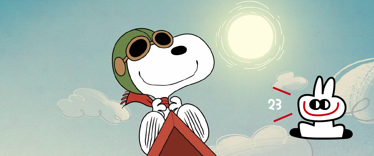 漫画里,他经常趴在红色狗屋的屋顶上,戴着风镜和飞行帽,把自己想象为驾驶着红色单翼战斗机的王牌飞行员,和红色男爵展开史诗级对决。虽然常常被“击落”,但他从屋顶滚下来后,总会艰难地爬回狗屋,发出最后的电报讯息。