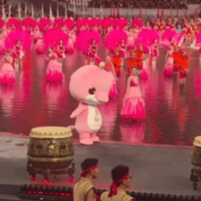也正因为这样,导演虽然通过大量严格的训练保证现场表演时的质量和统一性,但并没有限制吉祥物在其他时候的即兴发挥。因此我们一边称叹这些小孩哥小孩姐的高难度技术动作时,也会被各种意料之外的活人感瞬间戳中。