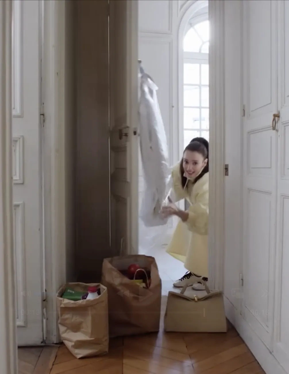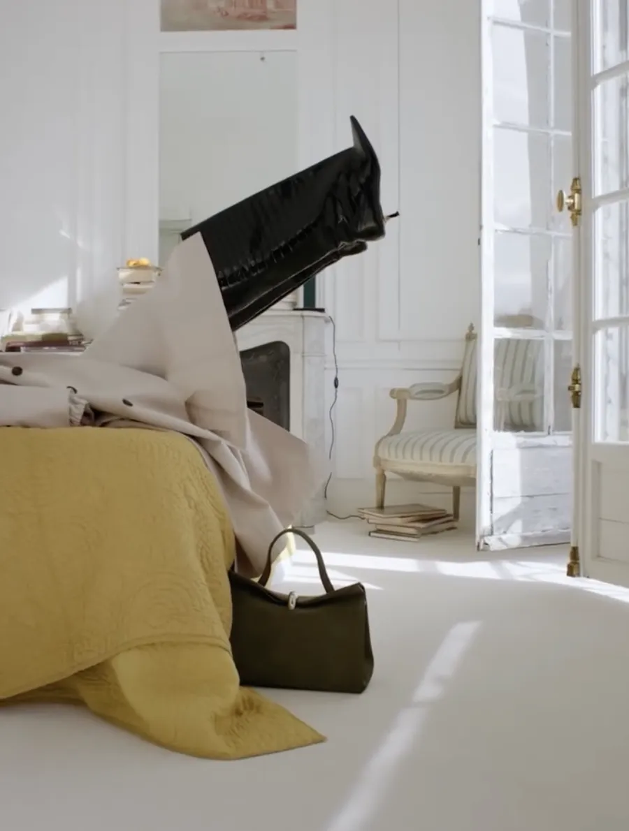 短片呈现了多个极其贴近日常的片段:下班回家瘫倒在床、边接客户电话边随手涂鸦、对镜子补妆时忽然做鬼脸、开门时包包被门把手勾住却故作优雅......每个场景仅10秒,也没什么台词,却让不同颜色的Valérie包包自然露出,也悄然拉近了品牌和消费者之间的距离。