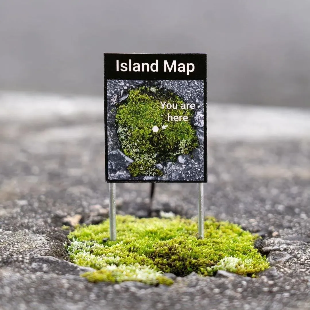 Michael Pedersen 则像是街头的剧场导演。他常常选择那些不起眼的地方,为它们赋予新的叙述。一个洞口可能被标记为“仙境入口”,一块苔藓成为“世界上最小的岛屿”。它们悄悄改变了人们的观看方式。当你意识到城市可以被这样重新命名,想象开始渗入现实,街道也像是在进行一场随时可能开始的排练。