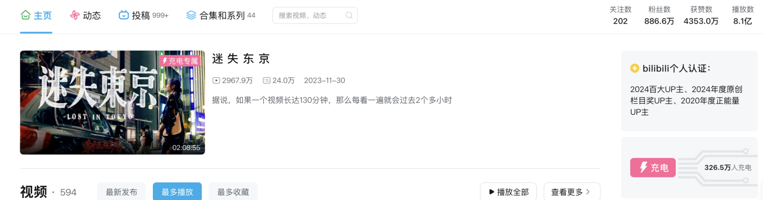 「食贫道」是这条试炼之路上大获成功的少数。2023年末,他们发布了长达2小时零8分的第一支充电专享视频《迷失东京》,如今这支视频的播放量已达到2900余万次。此后他们陆续推出《何以当归》《神鬼传奇》《你好美国》,都获得了千万以上的播放量。而2025年8月和10月播出的《韩国邪教》、《首尔夏天》凭借对韩国社会的深度剖析,数次登上热搜榜。