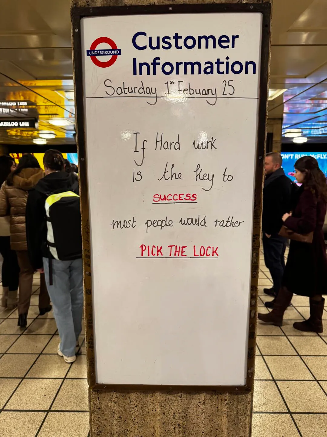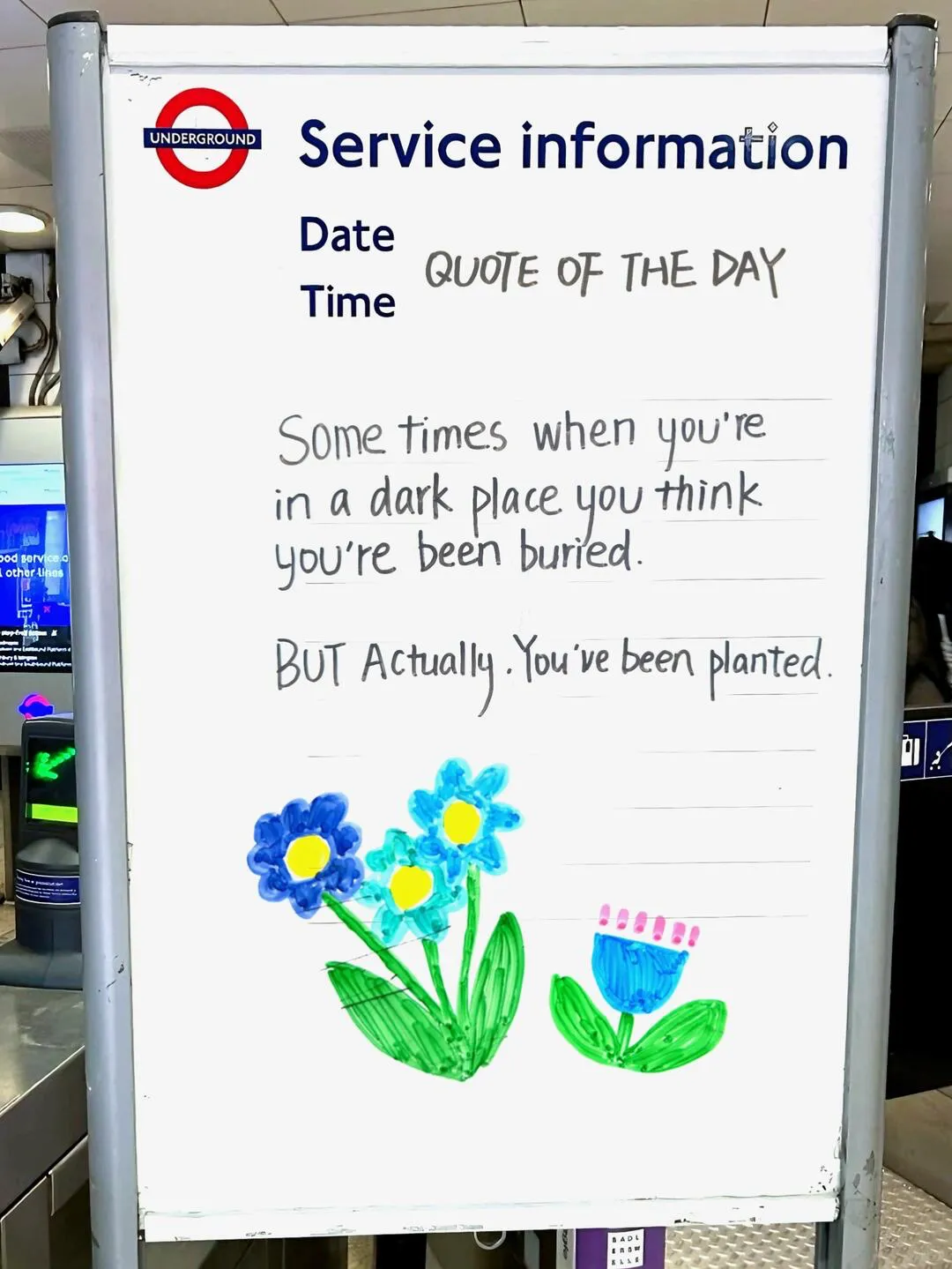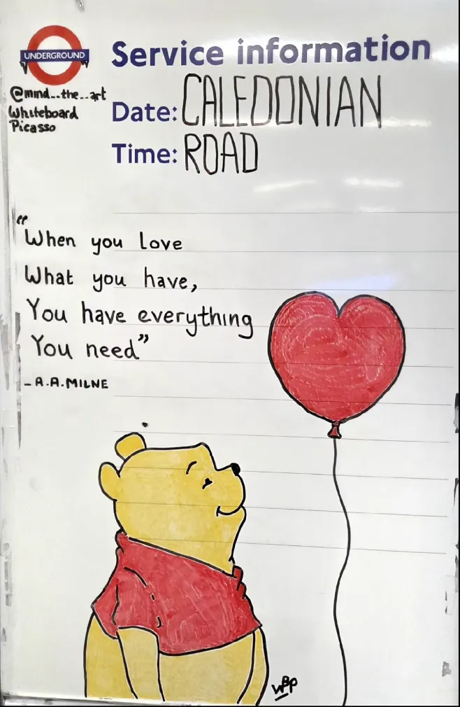 在伦敦,几乎每个地铁站都设有块白板。不用来发布官方通知,而是汇聚了路人随手写下的语录和涂鸦。