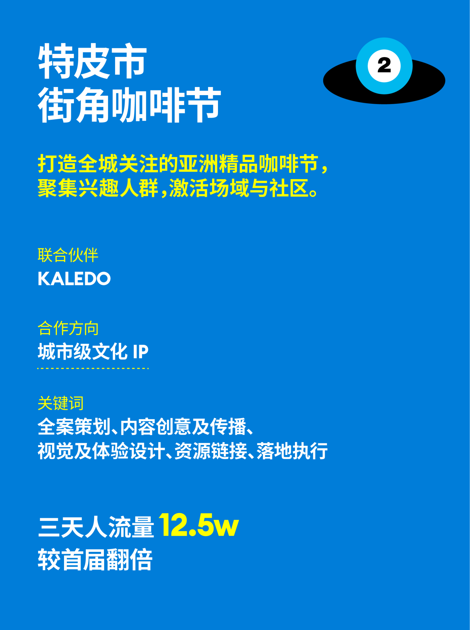 KALEDO是深圳2024年启幕的全新湾区文化商业综合体。MINDBREAK从初期战略开始聚焦品牌“街角”特性,除特皮市·街角咖啡节外,为其打造“环球街角指南”专栏与“快来道”IP系列沙龙,以数字内容结合场景体验的方式,为品牌打造统一、清晰的形象,精准吸引同频圈层,快速提升KALEDO的认知度。