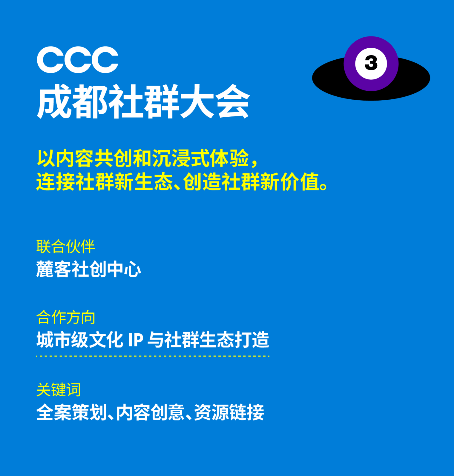 2022年,麓客社创中心与TOPYS共同发起CCC成都社群大会,一个以社群为核心的创新实验大会,以开放态度链接社群、公众、社会和商业等多方力量,探索社群发展的效路径,促进共益城市和社群之都的生态发展。