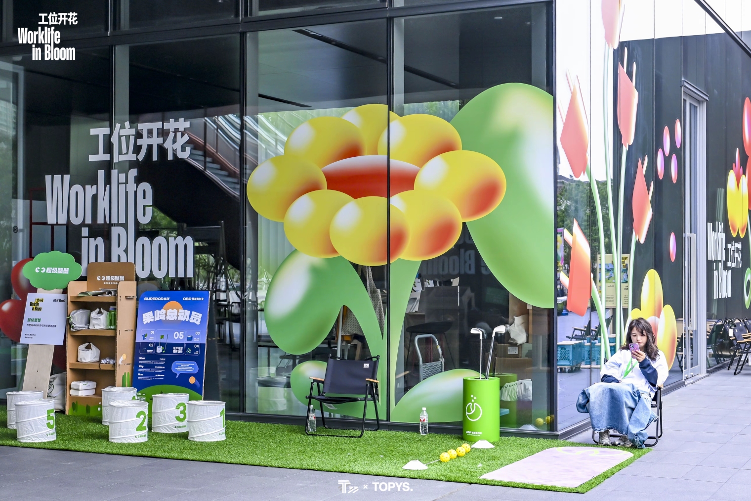 其中春季办公文化市集“工位开花”及夏季非正式运动会“workOUT好汗日”,将T33大堂开辟成主题体验场地以轻巧、易参与的互动,将“办公与生活灵动切换”的品牌属性具象描绘。