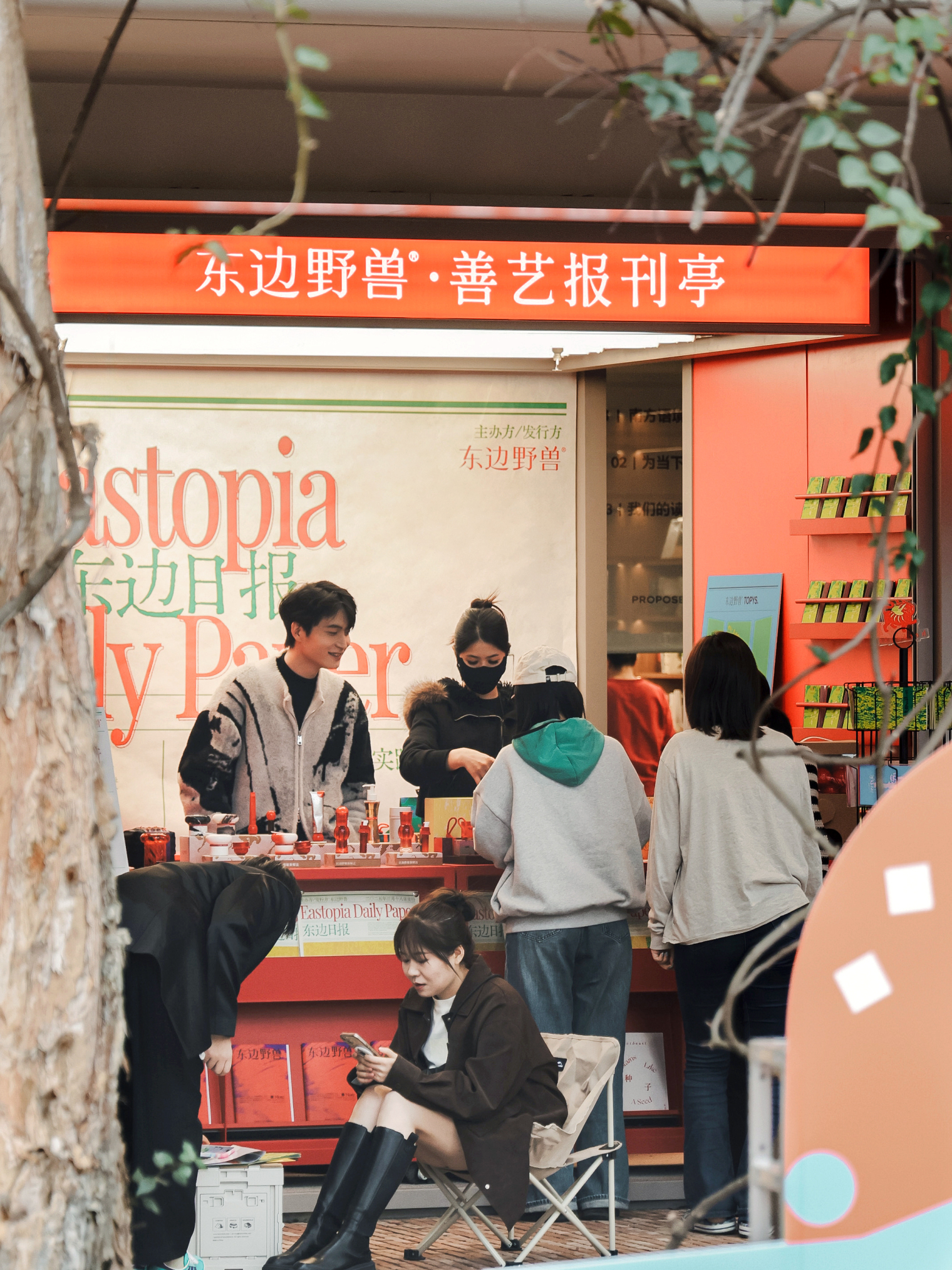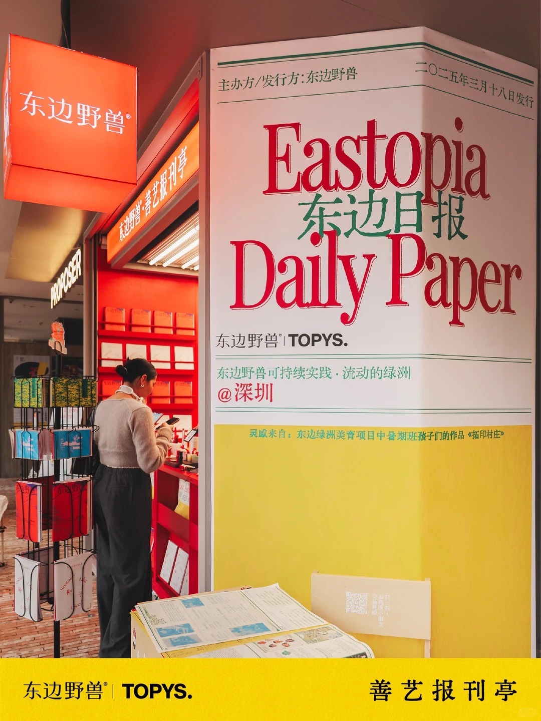 东边野兽重视品牌文化与美学表达,与LOFT53“让文化生活成为新日常” 的理念相契合。由此,MINDBREAK以“报刊亭”的概念—— 曾经城市中最小单位的“文化综合体” —— 串联二者,辅以东边绿洲 x TOPYS联合呈现的报纸《东边日报》,轻巧地将品牌文化带到创意园和年轻群体面前。