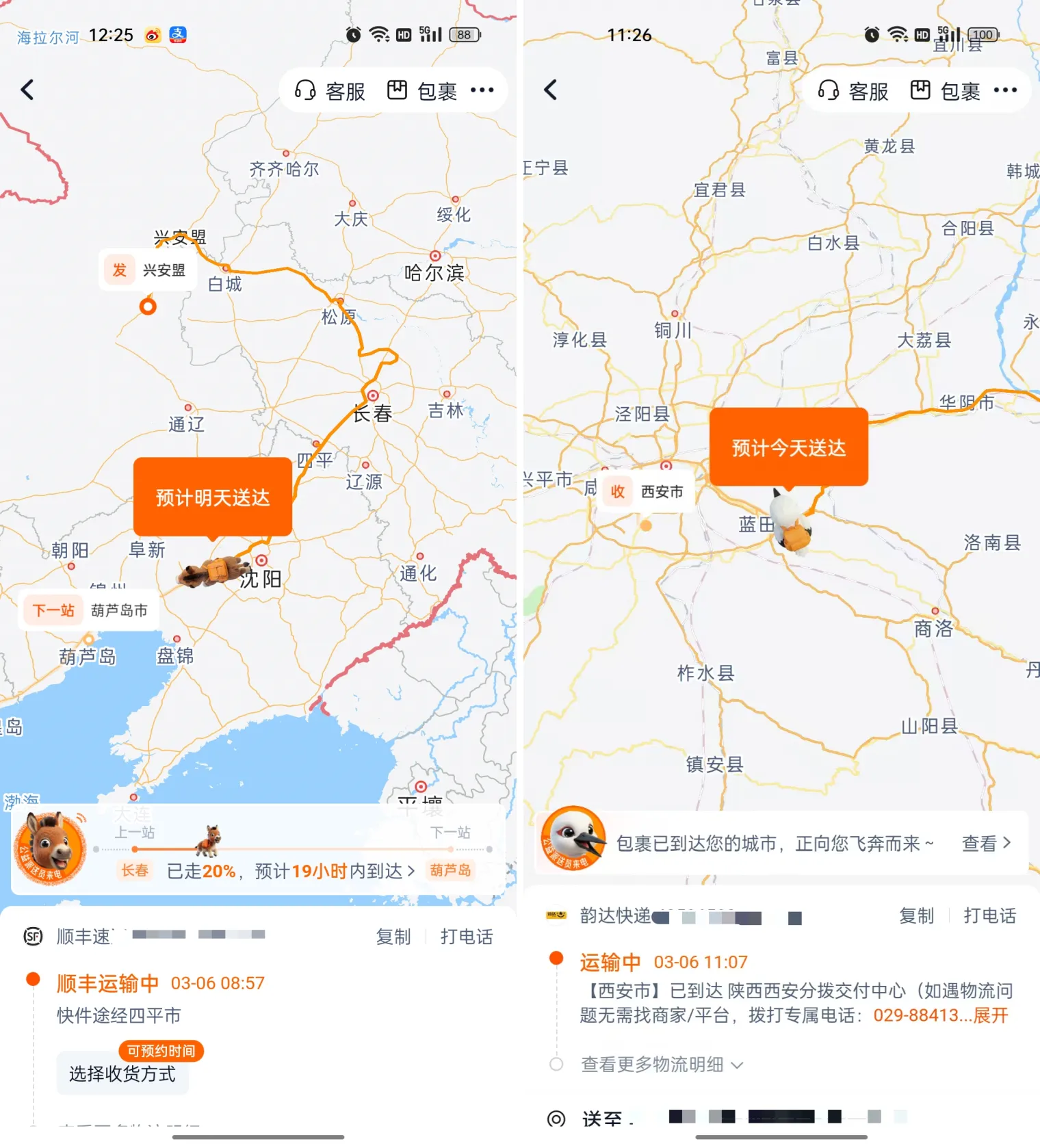 没有太多复杂的操作,你只需要在寻常查看物流信息的时候,点开地图左下方那个小小的动物头像,便能感受到这份温暖。