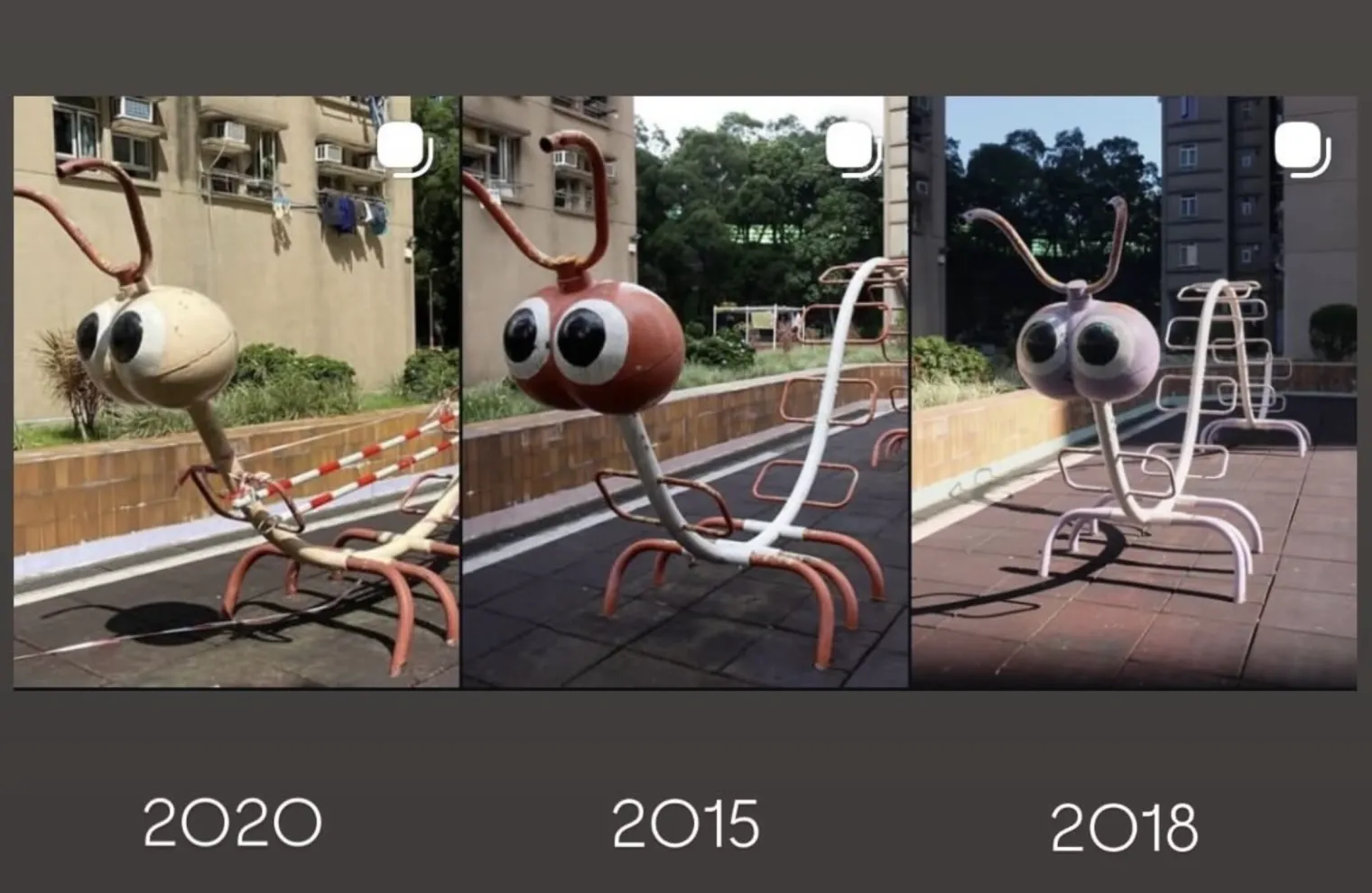 还有一个原因是,儿童乐园往往也是居民休息、聚会的地方,它们抽象的造型、不拘一格的设计,让公共设施具备了辨识度和“地方感”,构成了独有的社区回忆。比如最近,香港宏福苑因为火灾后修缮工程的需要,拆除了公园里经典的“毛毛虫爬架”,让不少市民感慨集体回忆的消逝。也许这也是大象滑梯的怀旧点所在:我们确定地感到我们曾属于那个温暖的、独一无二的地方。
