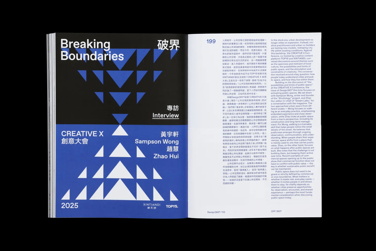 此外,杂志也将眼光投向设计在其他领域的应用:策展式餐桌如何设计一段进食过程?设计思维如何驱动母婴品牌成长?本期还收录了去年CREATIVE X创意大会后,黄宇轩与赵慧关于“公共空间的活化实践”的精彩发言。无论你是设计从业者,还是对设计在生活与商业中的角色充满好奇,你都可以通过这本杂志一览前沿热点。