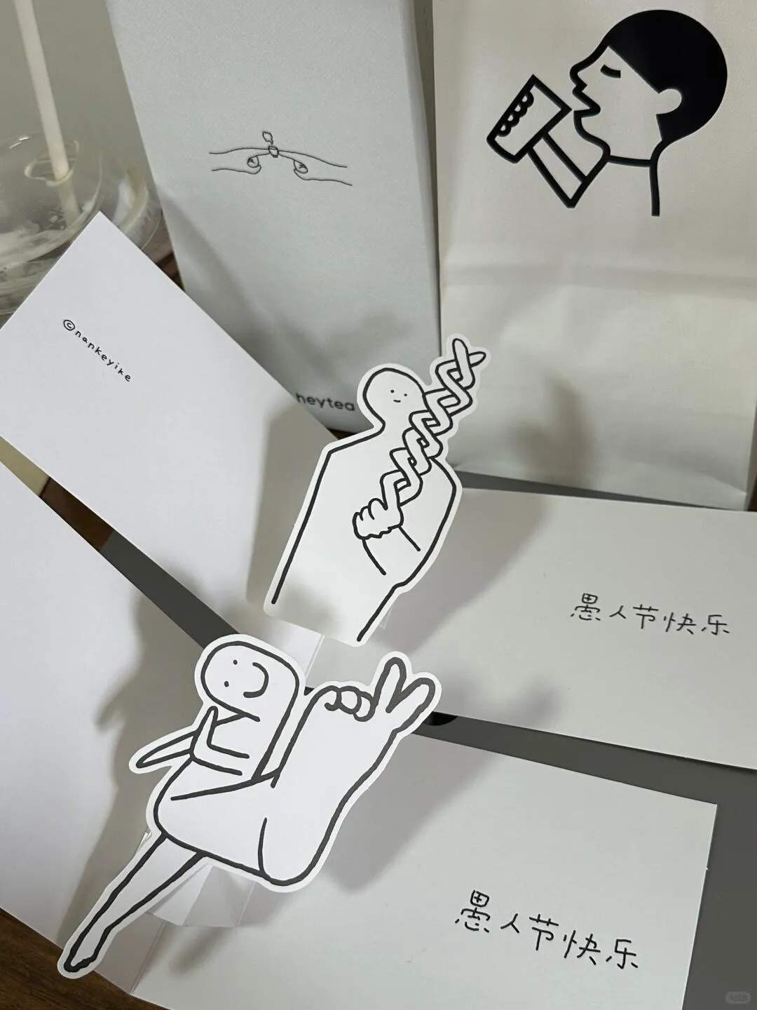 2025年,喜茶推出全新周边灵感小卡,只随单赠送,不作售卖。简约但风趣的文案和设计,点燃许多人的收藏欲,配合不同活动推出的限量款更是“一卡难求”。昨日愚人节,喜茶和插画艺术家@ 南柯一客 推出的两款抽象小卡,再次刷屏:一款用大脚丫比耶,一款螺旋比心,透着一股淡淡的“喜感”,精神状态非常良好。