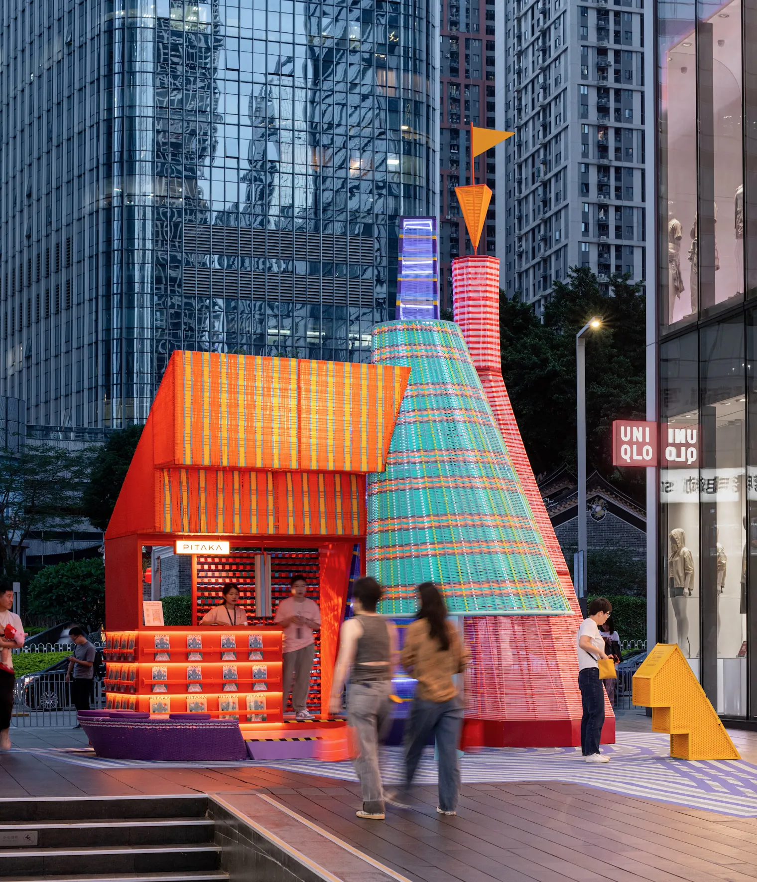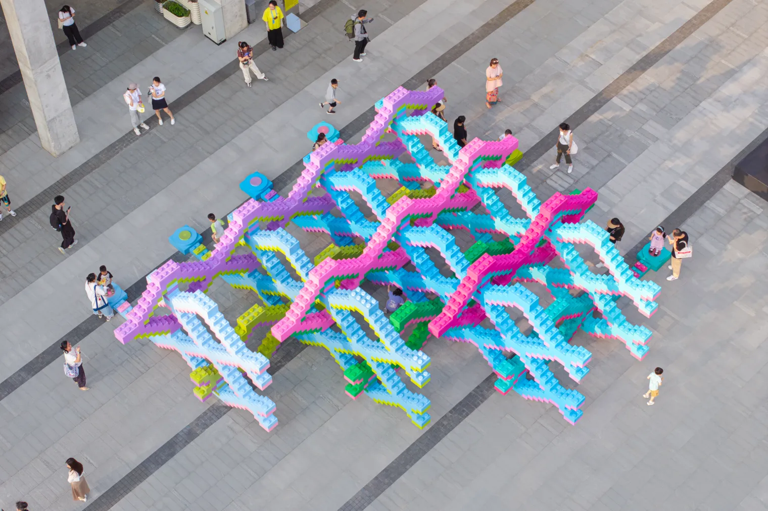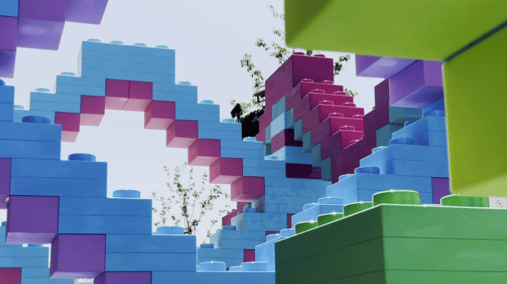 去年乐高“世界玩乐节”上,一座占地面积超100平米的大型彩色装置成为焦点。它如同立体的编织物,连接处保有“留空”缝隙,就像纵横交错的针线间自然留下的孔洞。夜幕降临时,嵌入的灯带流动闪烁,光影盛宴就此开始。