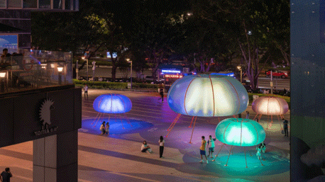 由此,“大星吉子”第一个代表作诞生,为后续的作品风格打了样。后续被大众熟知的《光之浮想》《JUMP城市电场》,都是利用气模材料加上多彩的灯光,打造出大尺度的地标式装置。