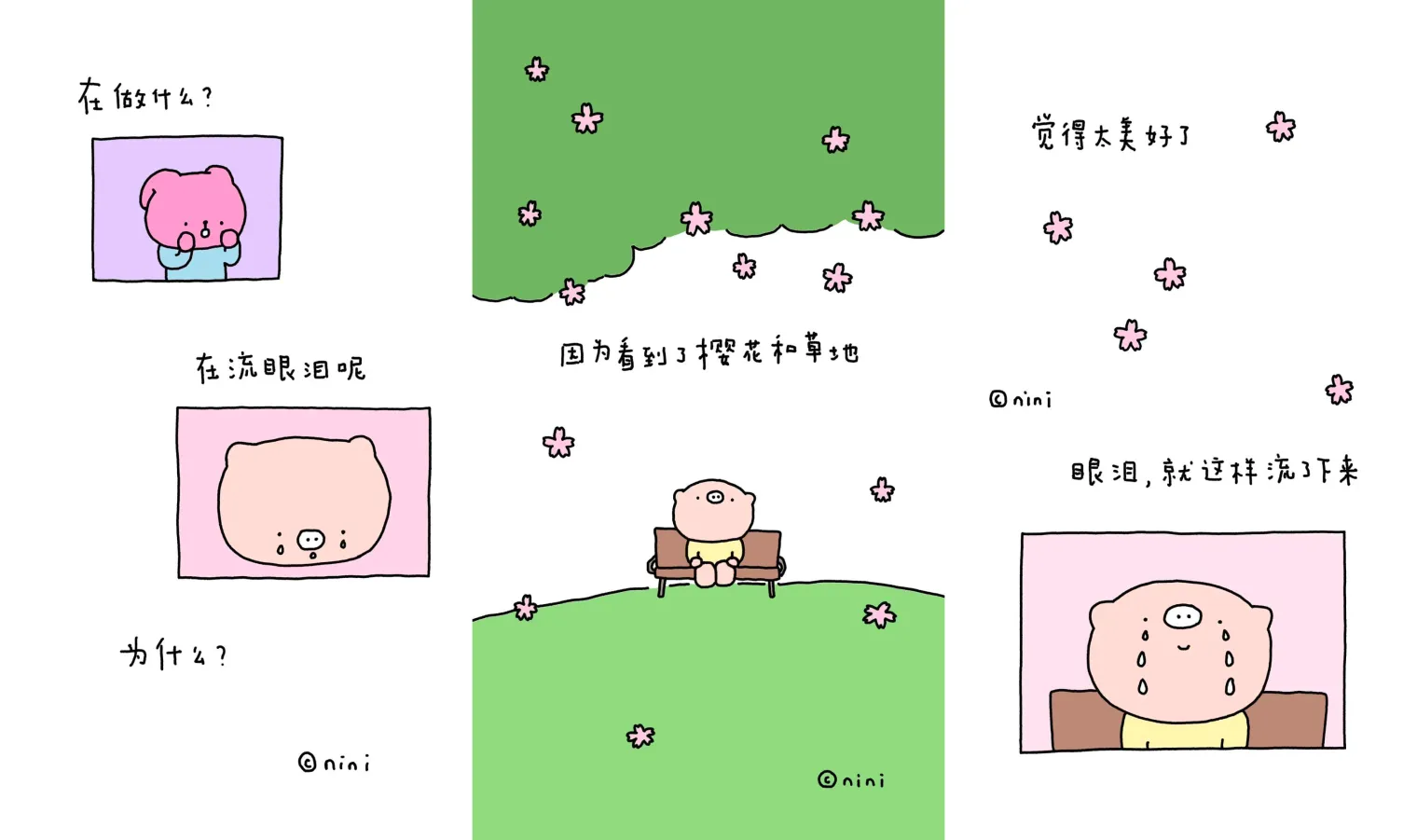 拟泥nini:怎么轻松怎么来,可以先用四格、六格这些比较短的篇幅去画一些生活当中的事情。当你发现你能把这个事情讲清楚了,然后又能讲得非常有趣的时候,其实就已经成功了。